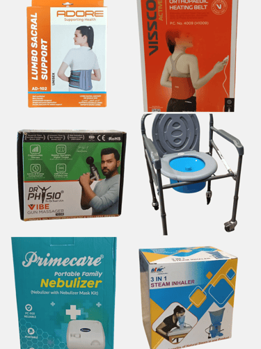 Chirayu Healthstop offers a variety of health and wellness products designed to enhance your comfort and well-being. Our massagers provide soothing relief to tired muscles, ensuring relaxation after a long day. The toilet chairs are designed for convenience and support, making daily routines easier for those with mobility challenges. Our nebulisers deliver medication directly to the lungs, providing effective respiratory relief when you need it most. The heating belts offer targeted warmth for muscle pain and stiffness, promoting healing and comfort. Finally, our steam inhalers help clear nasal passages and ease breathing, making them an essential tool for respiratory health.